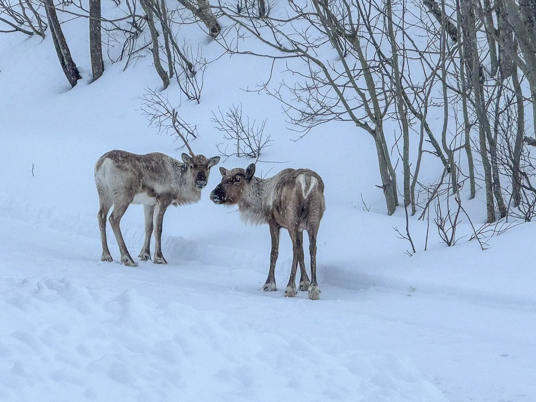 Everyone is in full powder stress, while I am imagining waking up in a Norwegian Hytte situated at the deepest fjord of Kvaløya. Reindeer are making a move towards the mountains, planning their route through our “garden.”