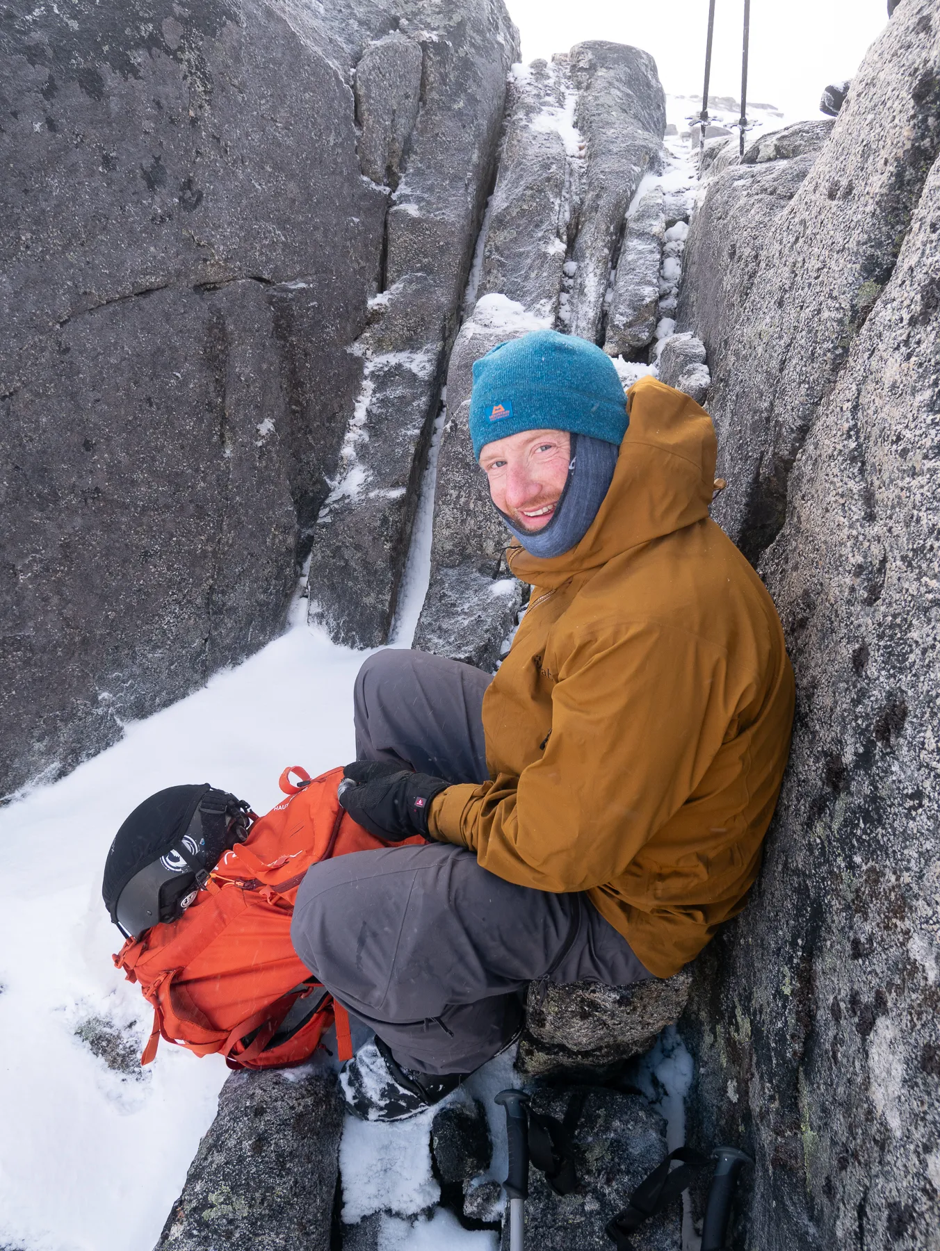 I tell my group about the cruxes of the walk up that day. Everyone gets interactive, making jokes as we prepare for the cold temperatures and the hardpack snow ahead.